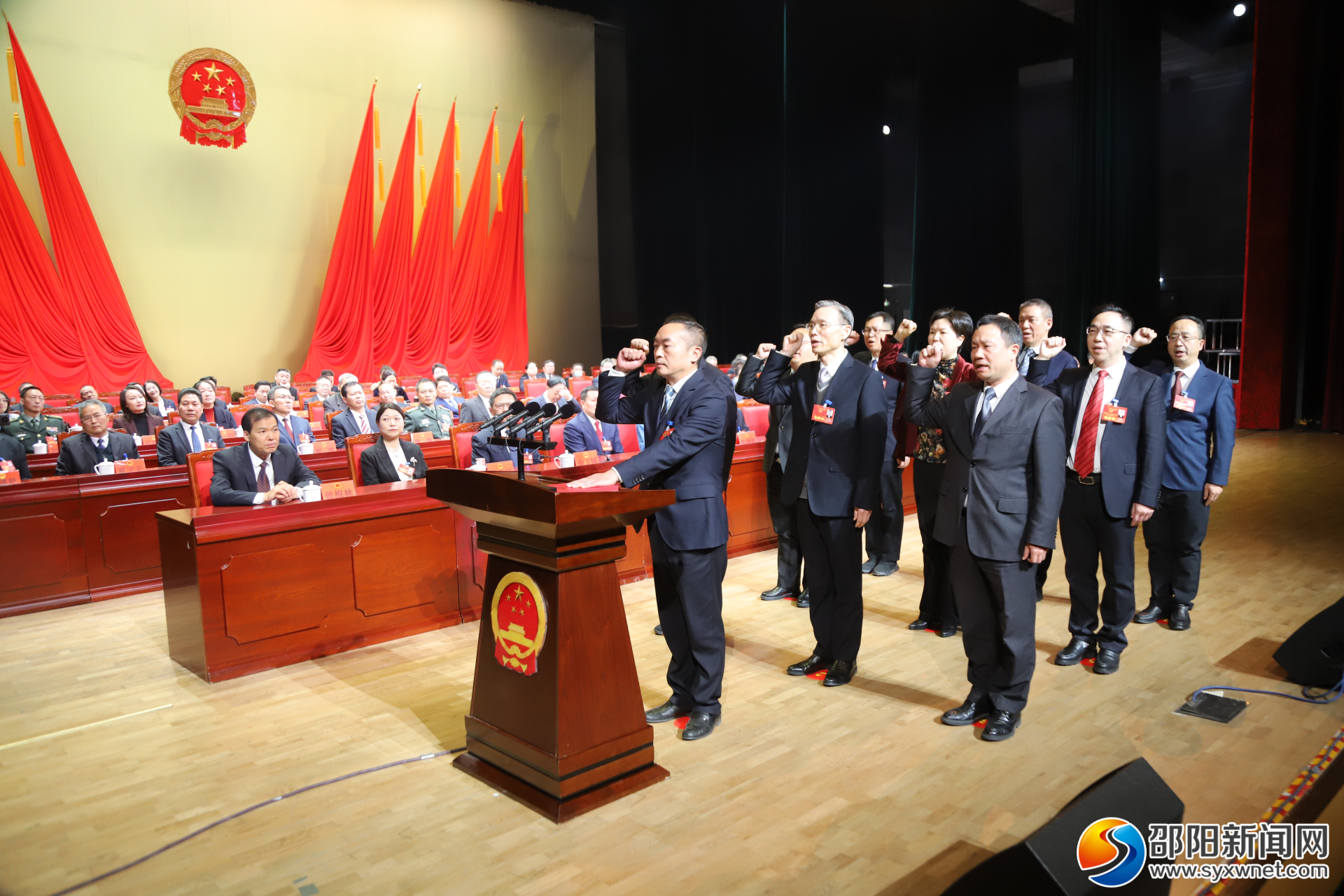 随后,本次会议选举产生的国家机关工作人员集体进行了宪法宣誓。