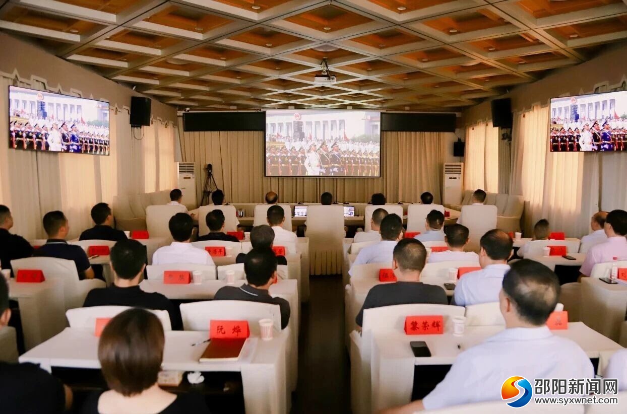 市领导肖拥军、龚红果、刘卫军、杨卫平等参加集中收看,市委常委、邵阳军分区政委陈晓勇在邵阳军分区机关与官兵一同收看。