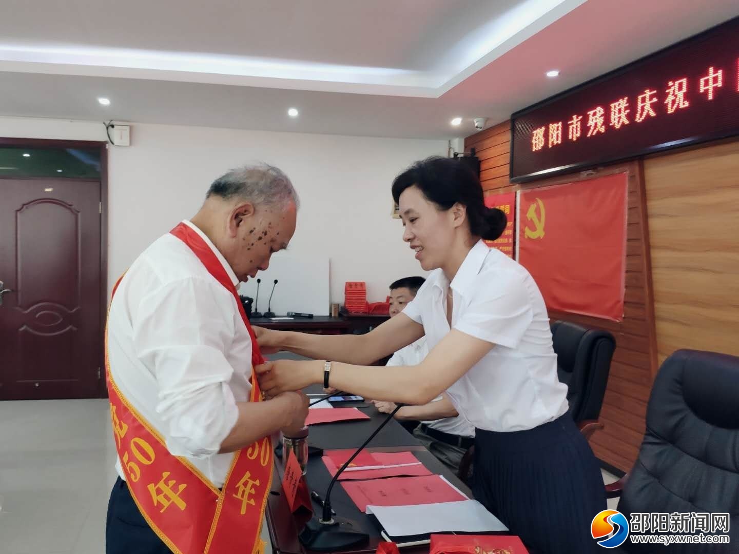 邵阳新闻网7月1日讯(通讯员 曾海燕)7月1日上午,邵阳市残联举行庆祝建党100周年暨“光荣在党50年”纪念章颁发大会,全体在职党员干部、退老党员及社会组织联合支部党员参加。