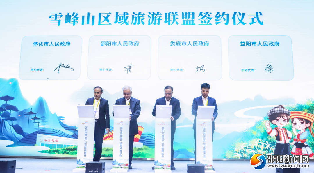 会上,邵阳、怀化、益阳、娄底4市签订雪峰山区域旅游联盟协议。隆回雪峰山山地度假旅游区项目等20个重点文旅投资项目现场签约,总投资40.11亿元。雪峰山文旅集团、北京大学博雅方略文旅集团、省旅游协会专家委员会代表及联合国世界旅游组织专家作了主旨演讲。