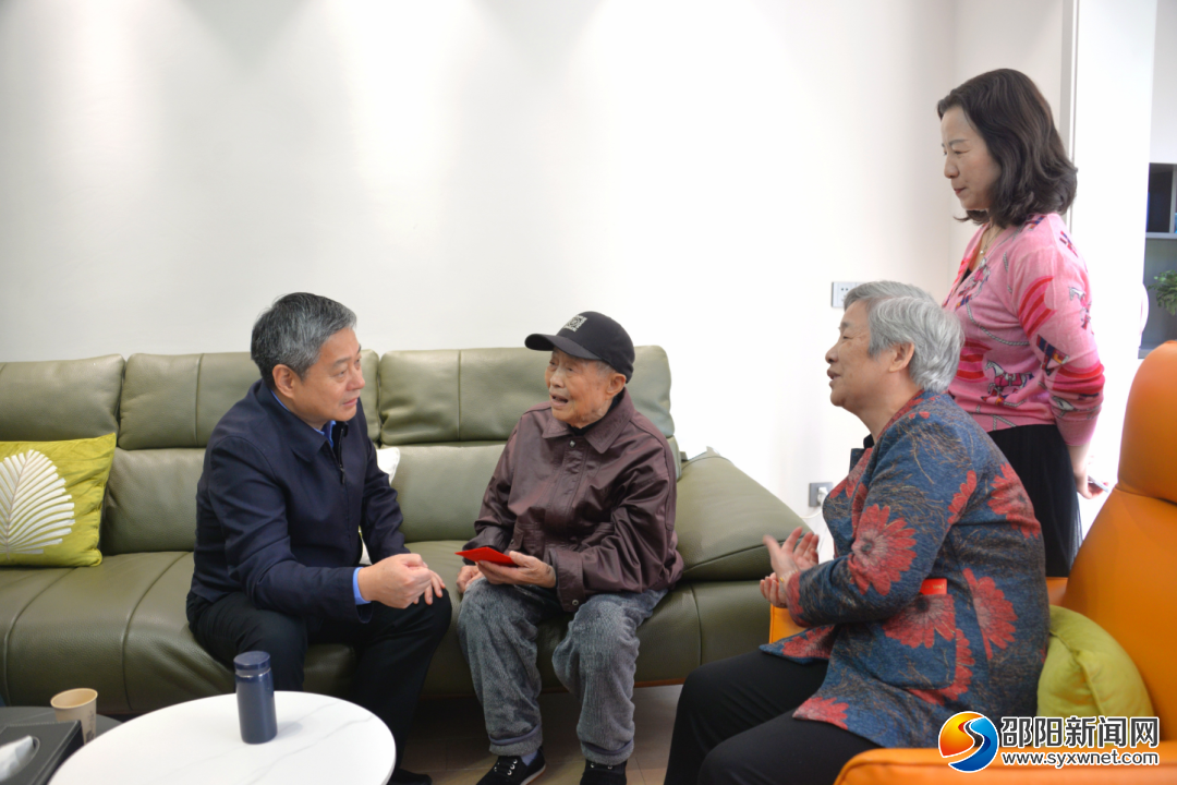 “老人家,重阳节快乐!祝您健康长寿、生活幸福。”随后,严华来到百岁退休老人姚禄桃、曾泽民和离休干部李瑞兰、彭鸣皋家中,察看老人们的居住环境,询问他们的身体状况、日常起居、医养服务、家庭生活等情况,对大家为邵阳经济社会发展作出的贡献表示感谢。在了解到老人们儿孙孝顺、生活美满时,严华叮嘱老人家属和相关部门要更加耐心细致地做好各项工作,让老人生活得更加安心舒心。