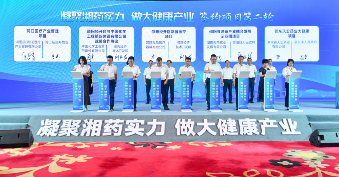 活动现场,邵阳市人民政府与湖南医药发展投资集团签订战略合作协议,邵阳经开区与中国化学工程第四建设有限公司签订战略合作协议,邵东天宏药业大健康项目等4个项目签约,签约总金额3.5亿元。会上,副市长晏丽君就大健康产业作了招商推介,邵阳经开区负责同志推介了邵阳医药产业园,湖南省湘中制药有限公司、湖南宝东制药集团有限公司负责人作了交流发言。
