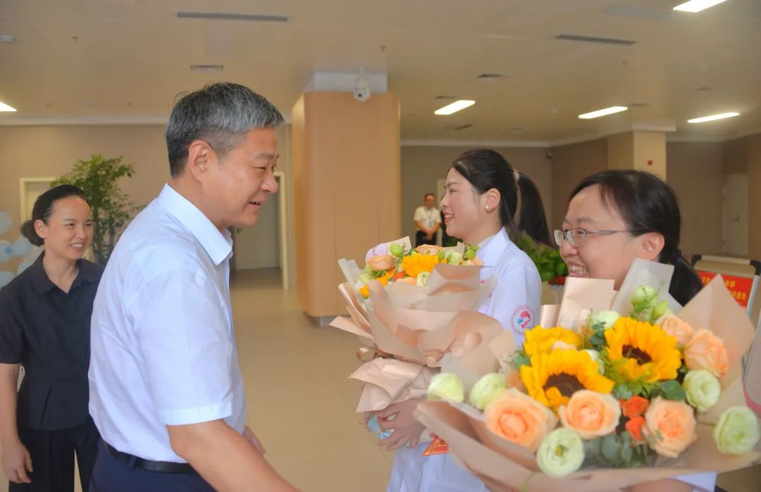 当天上午,严华先后来到市妇幼保健院、市脑科医院和大祥区城西街道社区卫生服务中心,看望医师代表欧阳霞、周亚娟、康苗苗、徐磊、吴双峰,向他们献上鲜花、致以节日祝贺,对广大医务工作者为增进人民健康福祉所作的积极贡献表示衷心感谢,希望大家继续弘扬“敬佑生命、救死扶伤、甘于奉献、大爱无疆”的职业精神,立足本职岗位、提升服务本领,为守护人民群众身体健康和生命安全再立新功。严华还在各医疗机构认真听取业务开展情况介绍,了解婴幼儿照护服务、患者康复护理、居民医疗救治等情况,要求各单位坚持事业留人、感情留人、待遇留人,关心关爱一线医务工作者,努力为大家创造良好的工作、生活环境,不断增强医务工作者的职业荣誉感、幸福感、安全感。