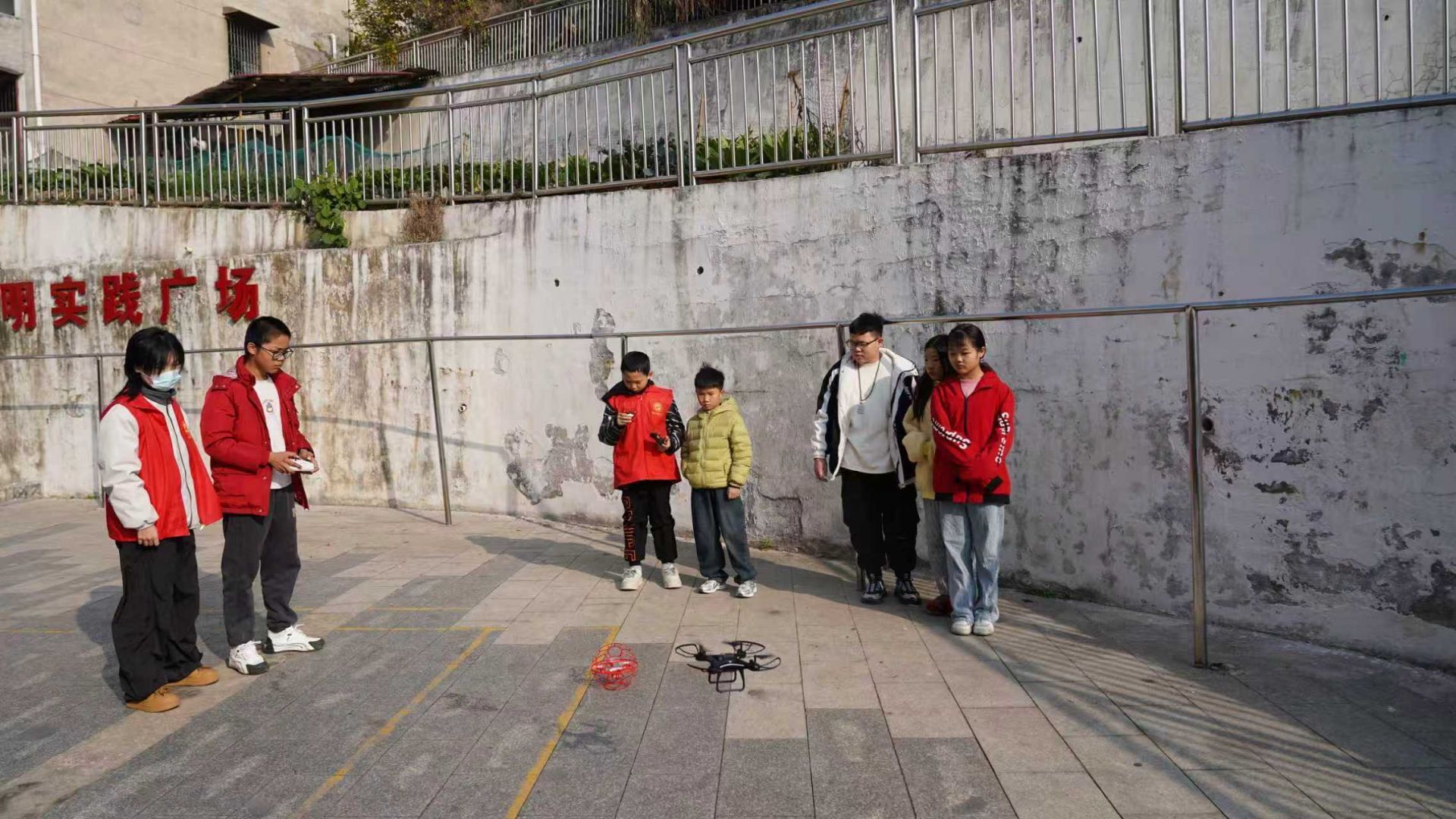 志愿者现场表演无人机飞行,引得居民纷纷驻足,孩子们更是惊叹连连,在沉浸式体验中感受科技的魅力。