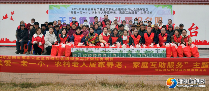 邵阳新闻网12月30日讯(通讯员 肖鹤洲 刘佩君 马朝霞)12月27日,隆回县民政局指导隆回县弘善公益志愿者联合会、隆回县福彩管理站牵手隆回红旗幼儿园、隆回爱尔眼科医院、健耳助听器耳科、隆回雅贝康口腔医院等公益组织和爱心企业在南岳庙镇新家桥村开展护老敬老公益活动。